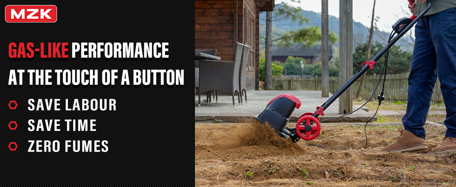 - [Efficient Digging Power]:With a 12-inch cutting width and 8-inch digging depth, MZK electric tiller is perfect for breaking up soil and preparing garden beds for planting. It’s ideal for digging and seed sowing, making garden work quick and easy.