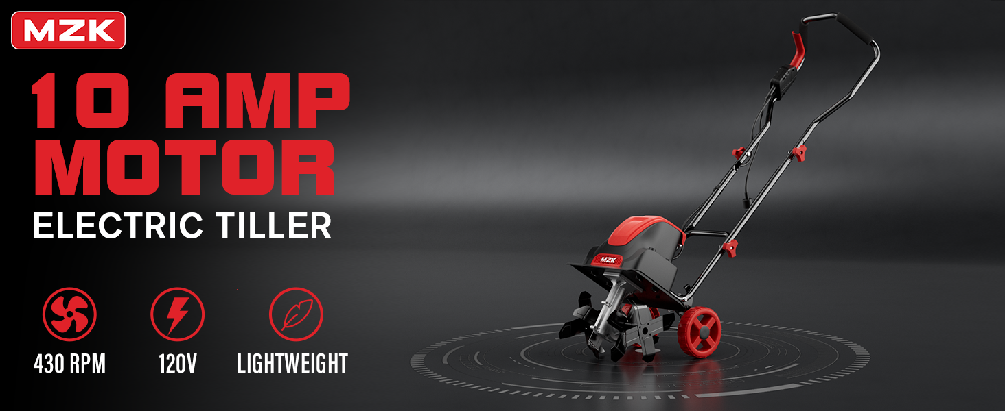 - [Strong Motor and High-Speed Efficiency]:Featuring a powerful 10-amp pure copper motor and 430 RPM, MZK tiller for gardening delivers smooth, fast performance. It also has 4 rust-resistant and 16 steel blades, making soil tilling more efficient and less time-consuming.