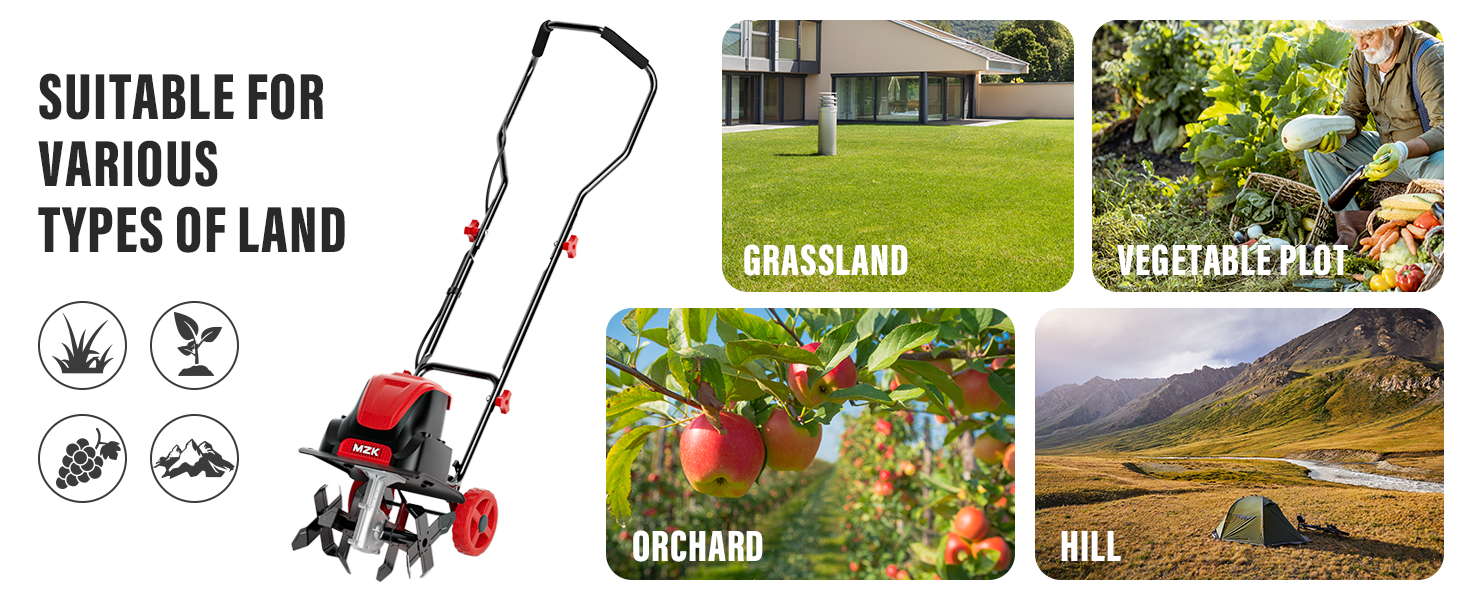 - [Multi-Scene Use]:Perfect for a variety of gardening tasks, MZK rototiller for garden is great for vegetable beds, fruit orchards, or regular lawn maintenance. It’s versatile and handles many different soil conditions, giving you all-around performance for your garden.