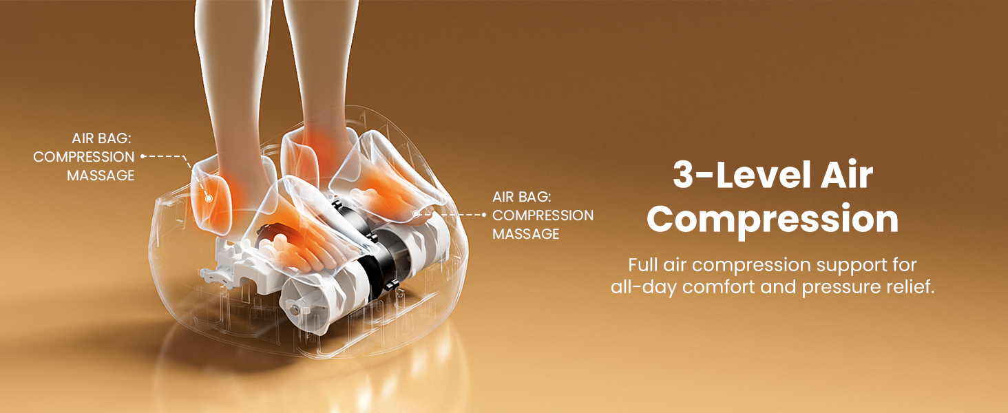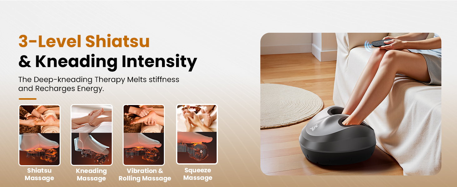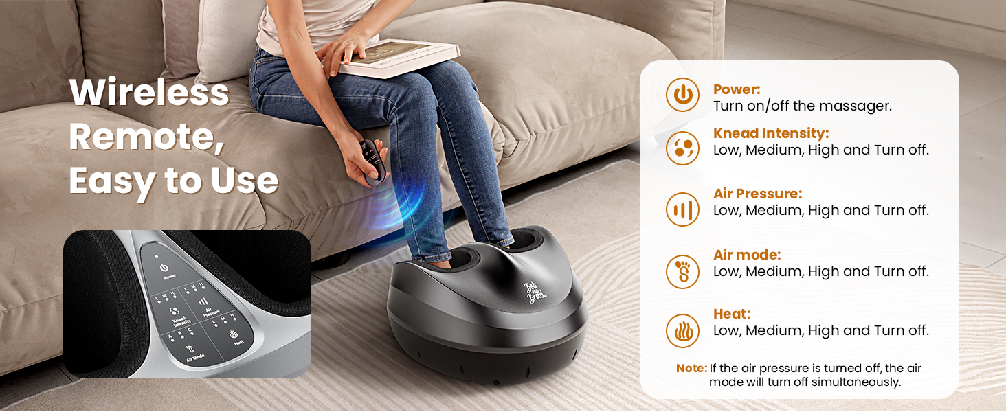 - Adjustable Air Compression & Shiatsu Massage: Enjoy a customizable massage with air compression and Shiatsu techniques. The 3 adjustable air pressure modes target different areas of your feet, providing a comprehensive massage that mimics the hands of a professional therapist. This feature is especially beneficial for those seeking targeted relief for foot problems or standing fatigue.