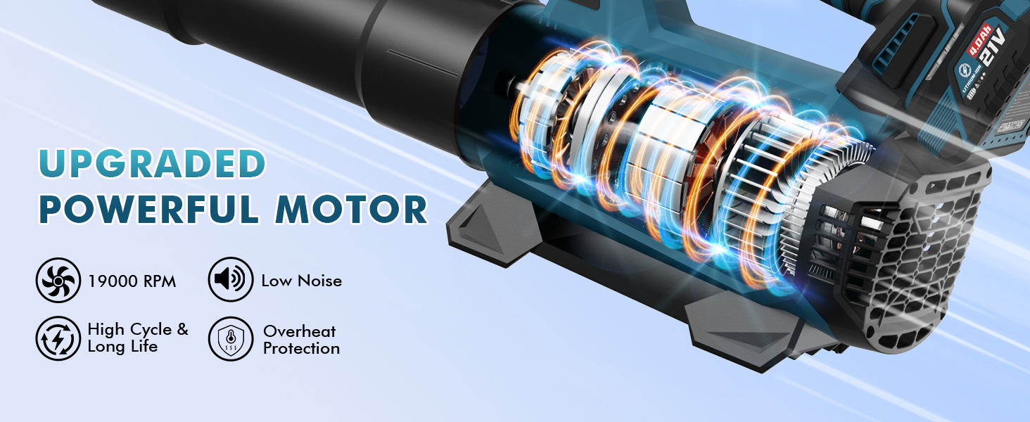 - Advanced Motor & High Efficiency - Say goodbye to the hassle of gas-powered blowers and the limitations of cords. GROWORT Cordless Leaf Blower is battery-powered, featuring advanced axial turbofan technology and a high-speed motor for maximum efficiency—saving you time and effort. Designed for lawn care, patio maintenance, yard cleanup, and even clearing dust and light snow with ease! It's not just a tool, it's a thoughtful and practical present