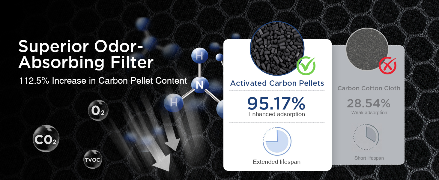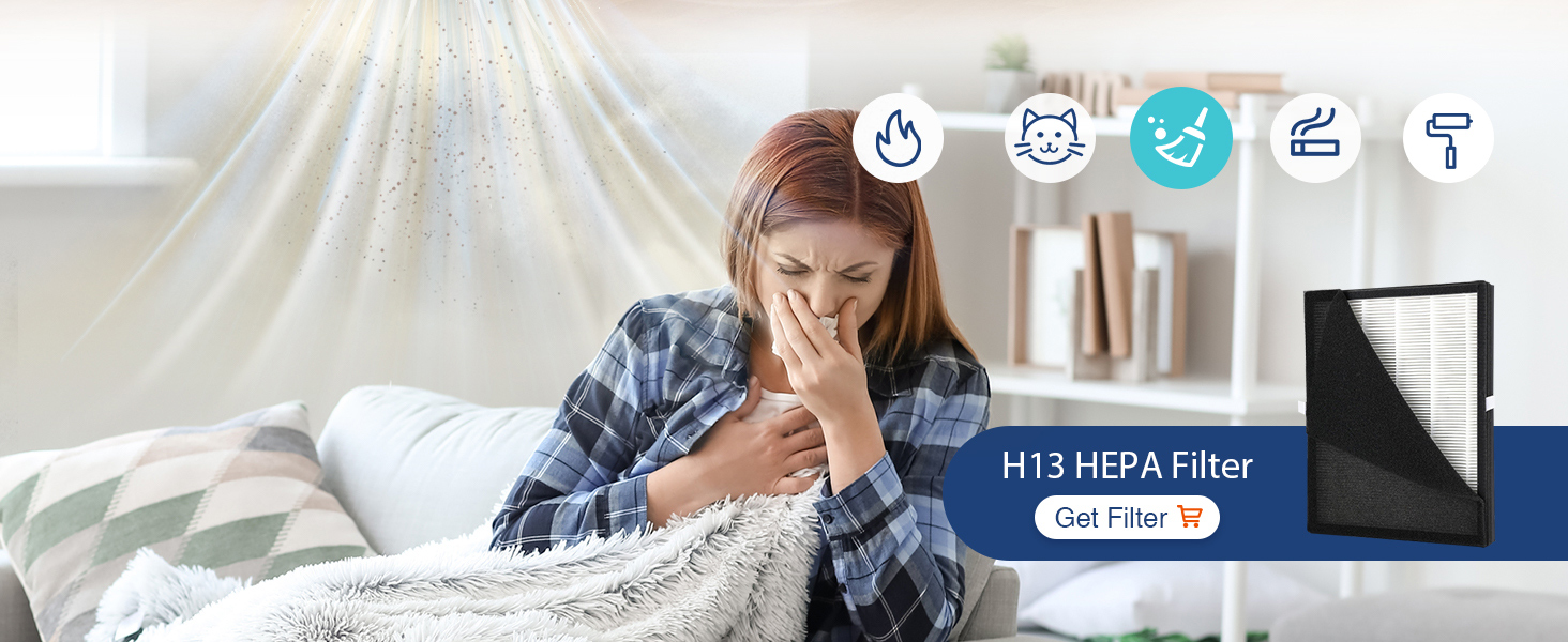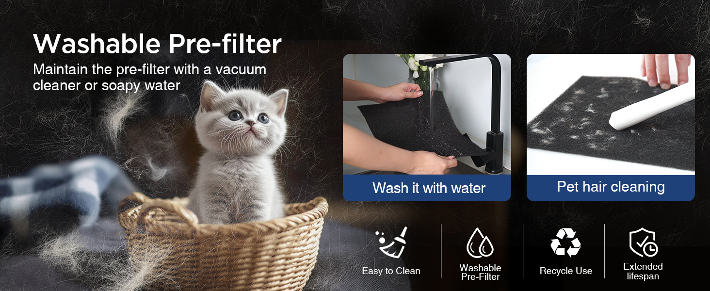 - WASHABLE FILTER & H13 TRUE HEPA: The air purifiers for home pets have a 3-stage filtration system that can effectively filter airborne particles as small as 0.3 microns, such as pollen, dust, and pet dander. Cleaning the pre-filter with water or a vacuum cleaner will help extend the life of the H13 HEPA filter. An activated carbon filter with 112.5% more activated carbon particles to help absorb odors such as pet odors, smoke, and volatile organic compounds. Best choice for pet lovers!