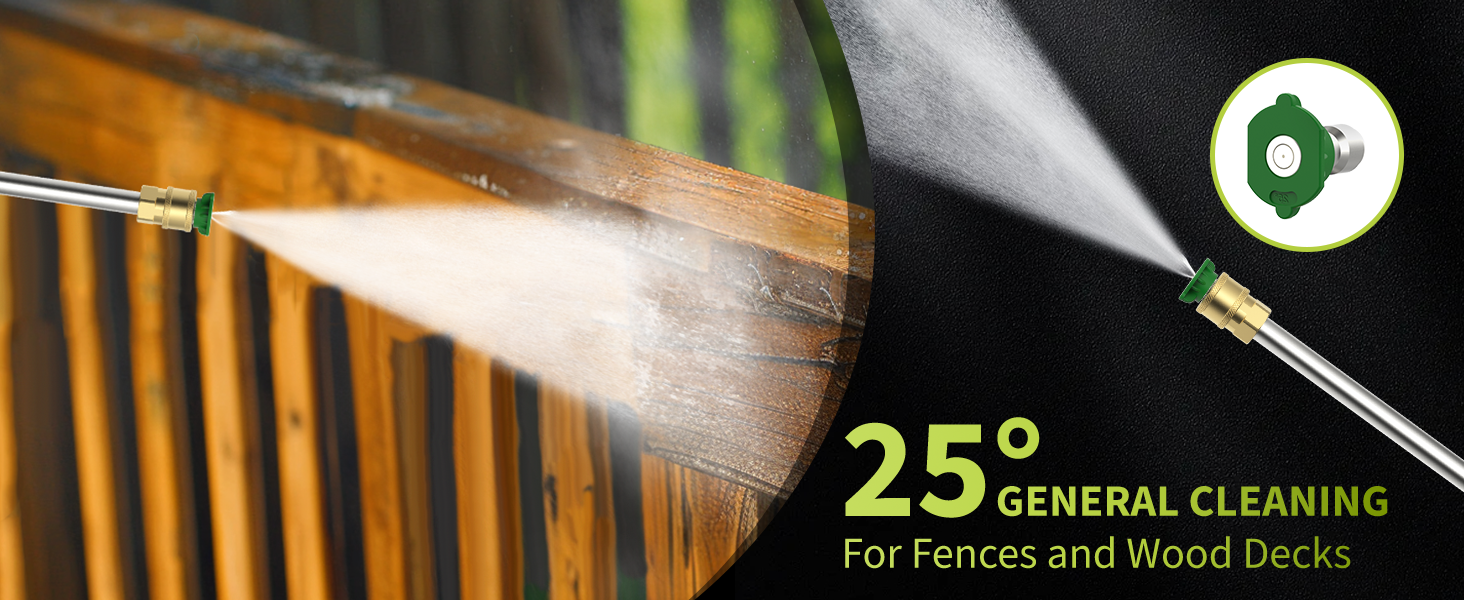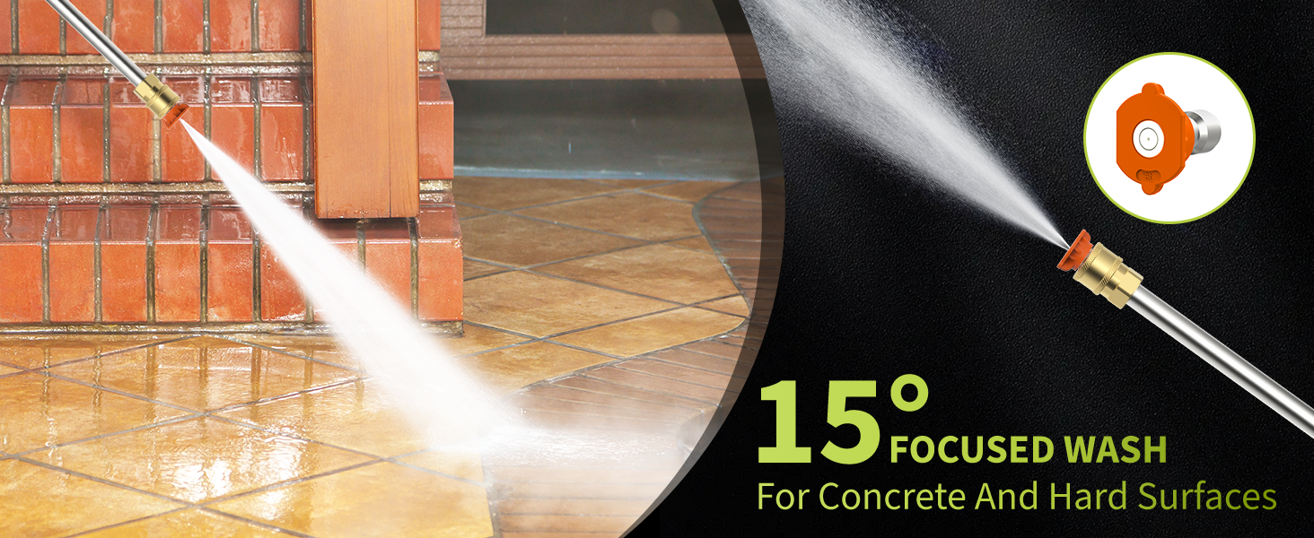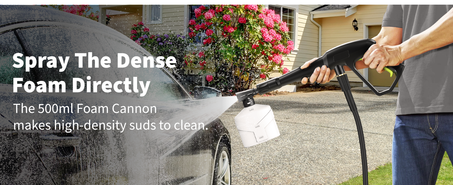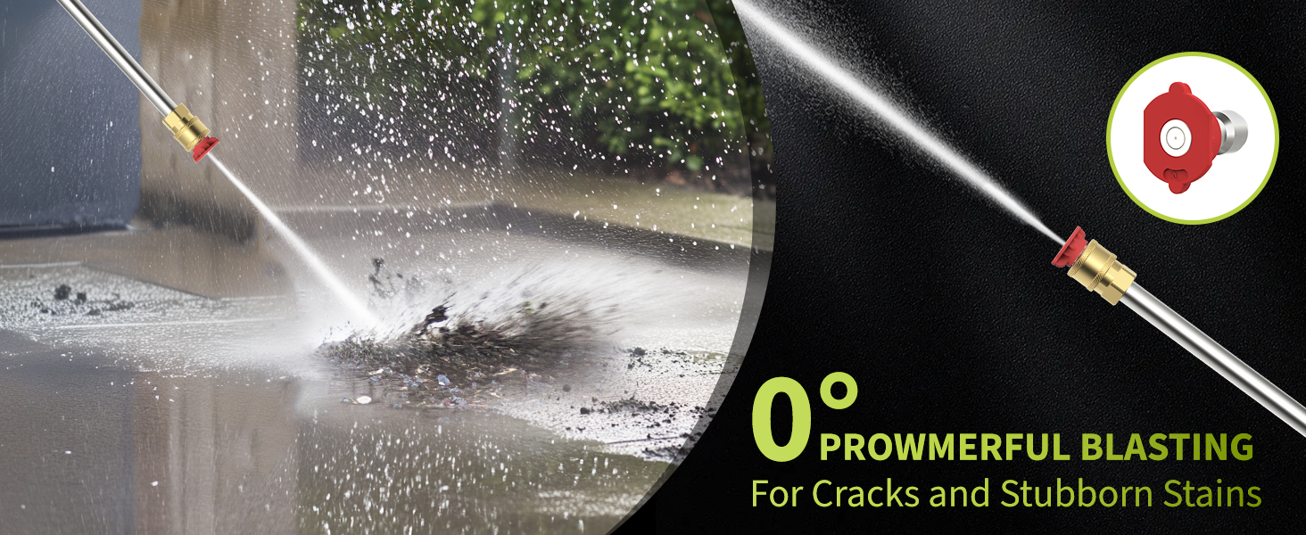 - 【4 Quick-Connect Nozzles】 Four easy-to-install metal nozzles (0°, 15°, 25°, 40°) enable quick switching between spray patterns to tackle various tasks, while the foam cannon ensures efficient detergent application, boosting cleaning performance on different surfaces.