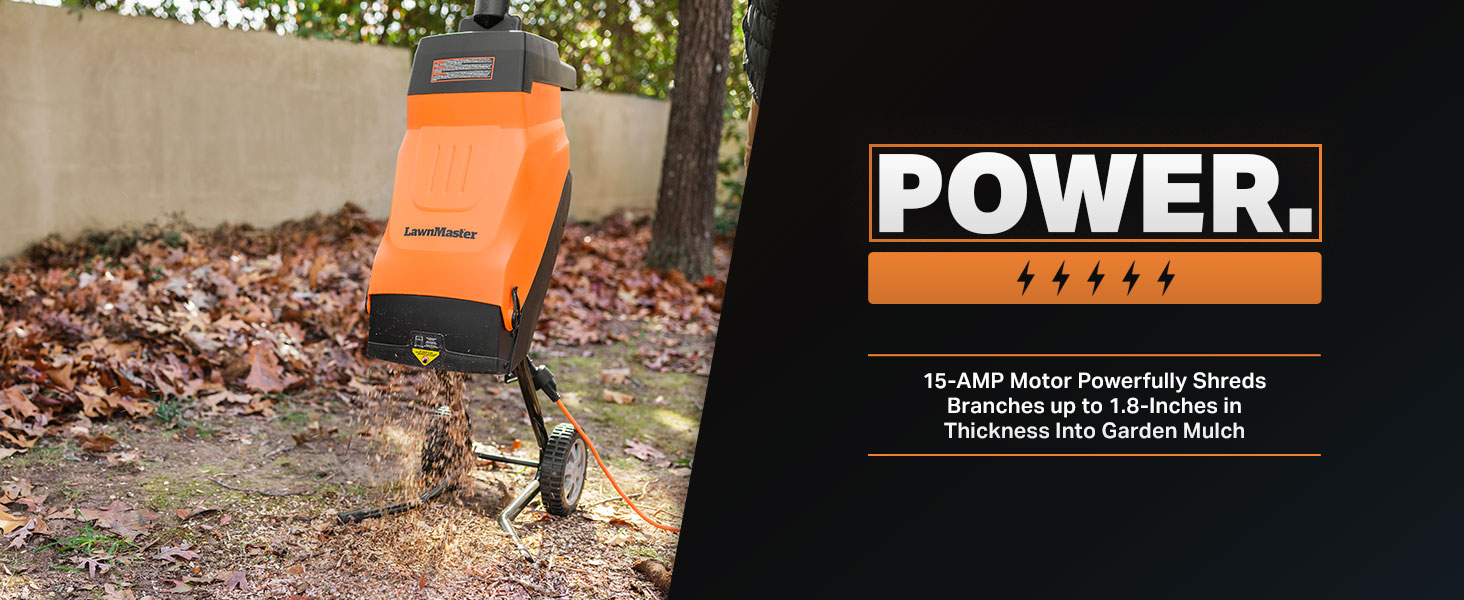- POWERFUL PERFORMANCE: 15-AMP motor shreds branches up to 1.8-inches in thickness into garden mulch