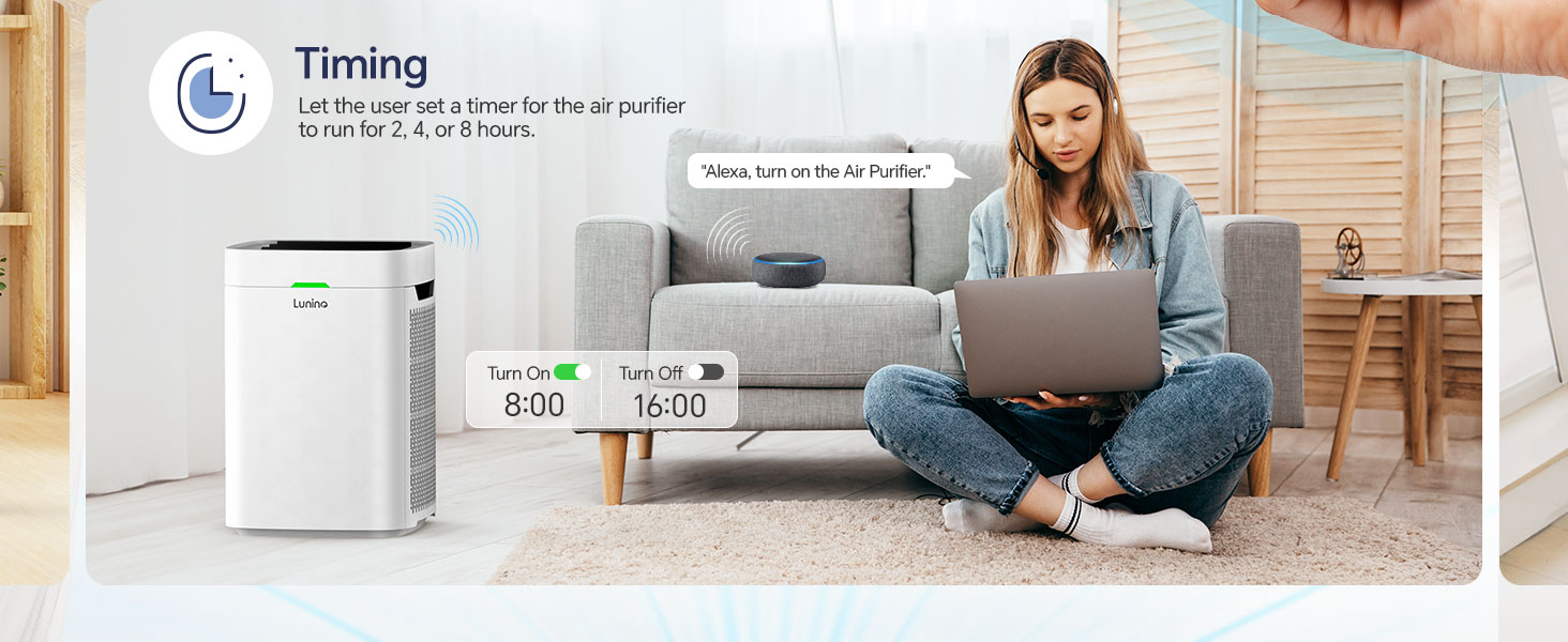 - πΊππππ πͺπππππππ πππ π¨πππππππππ - Through the Tuya app (compatible with Alexa/Google voice control), users can effortlessly schedule operations, enable automation, and remotely control the smart air purifier. For instance, activate maximum fan speed via the app minutes before arriving home to ensure purified fresh air welcomes you upon entry.