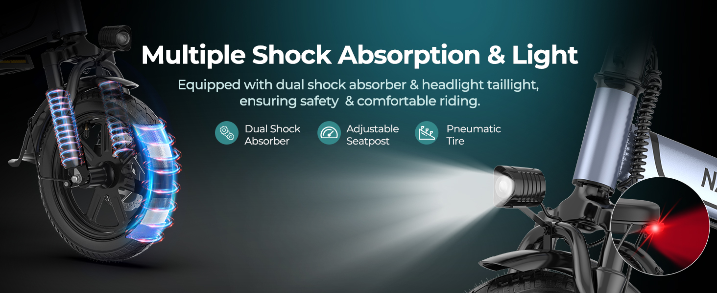 - SAFE & STABLE RIDING EXPERIENCE: Stay in control with the dual disc braking system, providing responsive and reliable stopping power in all weather conditions. The triple lighting system (headlight, taillight, and turn signals) ensures maximum visibility for safer night rides.