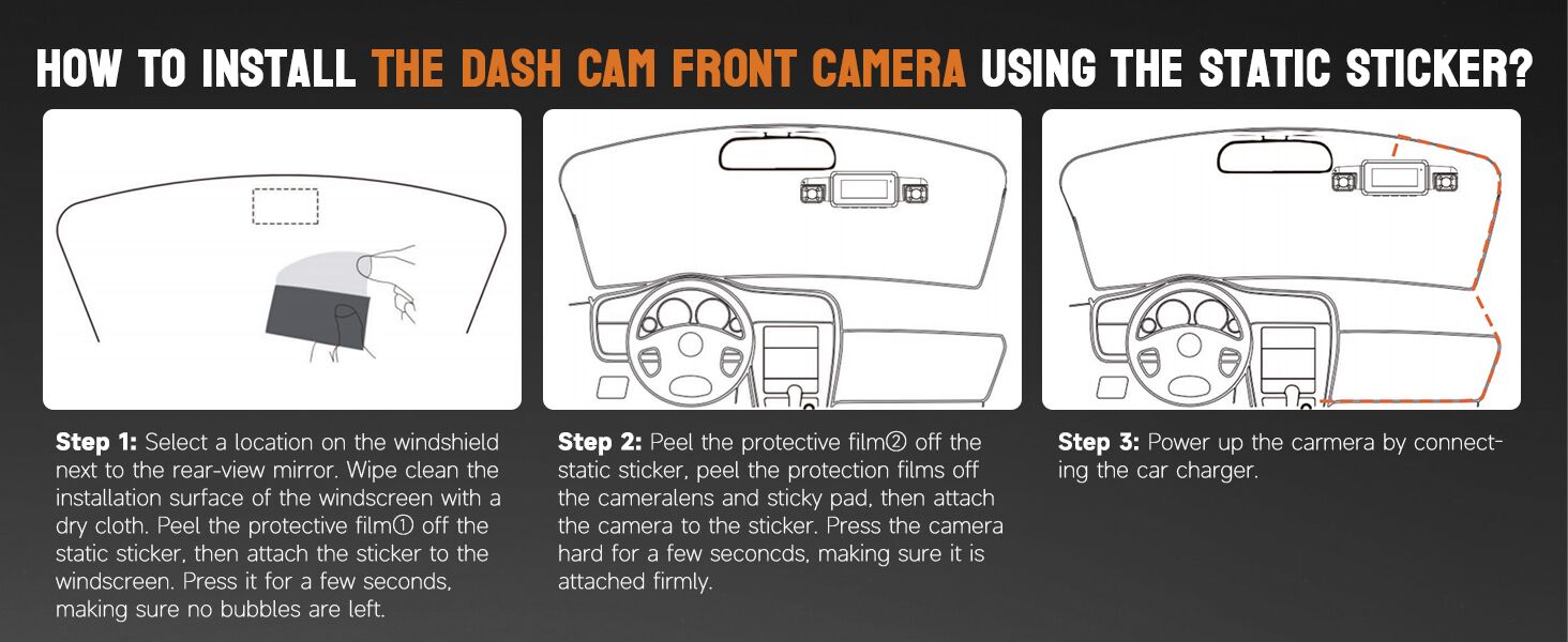 - 【G-Sensor Dashcams and Loop Recording】Car dash camera built-in sensitivity G-sensor can automatically detects a sudden shake/collision and locks the footage to prevent the video from being overwrote even in loop recording. When an event is detected on the road, it automatically locks and protects the relevant footage, saving it in the "Event" folder for quicker access to locked video files. Every 3 min loop recording, the oldest videos will be overwritten, when the SD card is full.