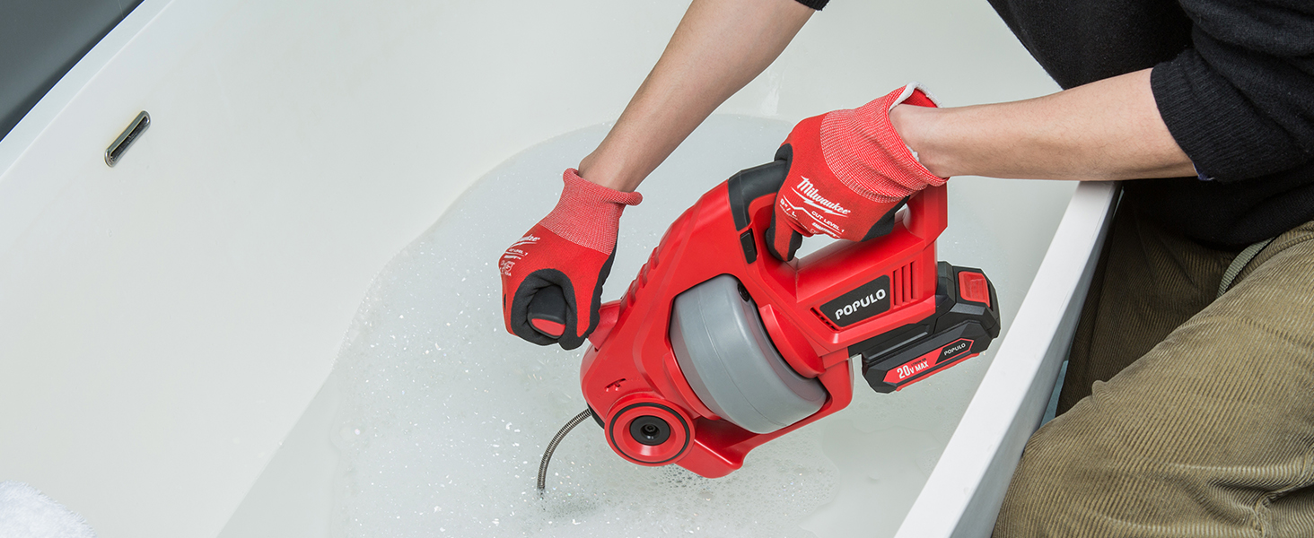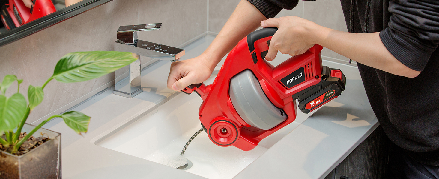 POPULO 20V Cordless Electric Drain Auger-Efficient 25Ft Auto-Feed Drain