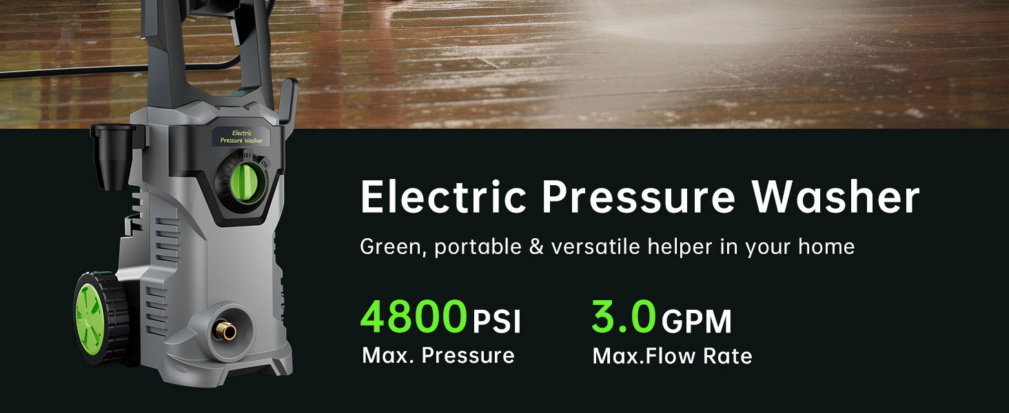 - Please kindly confirm that purchase from Patoolio Direct/US------- Professional & Powerful: Electric pressure washer up to 4800 PSI high pressure and 3.0 GPM water flow for professional grade clean; great for cleaning concrete, pavements, driveways, patios, decks, walkways, RVs, cars, boats, homes, fences, furniture and more.