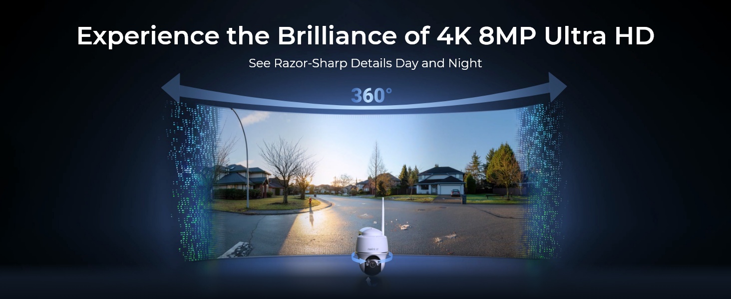 - 4K 8MP Color Vision Day & Night: The battery security camera is upgraded to 4K 8MP ultra-high definition, providing unparalled visual experience for you. The built-in motion spotlight helps you see every important color detail even at night.