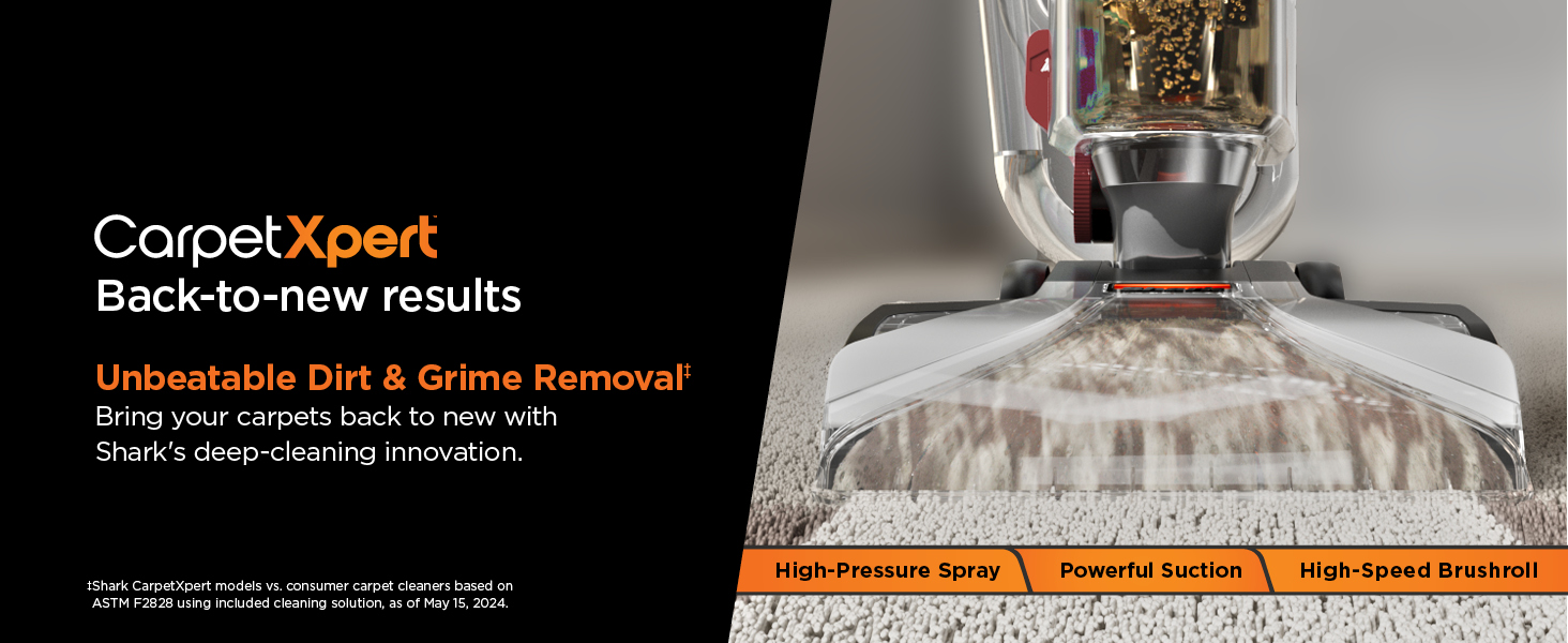 - UNBEATABLE DEEP CARPET CLEANING: CarpetXpert Technology combines a high-speed brushroll with PowerSpray high-pressure spray and Shark's ultra-powerful suction to deliver unbeatable dirt and grime removal.*