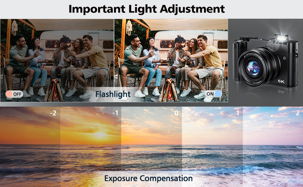 - Advanced Features & Bright Flash – The digital camera elevates your photography with anti-shake, time-lapse, slow-motion, face detection, continuous shooting, and vintage filters. Customize your shots with ISO, exposure compensation, timestamp, self-timer, and delayed shooting. Camera with built-in flash enhances low-light scenes, reducing noise and improving clarity in nighttime portraits, and dim environments, ensuring every shot remains bright and detailed.