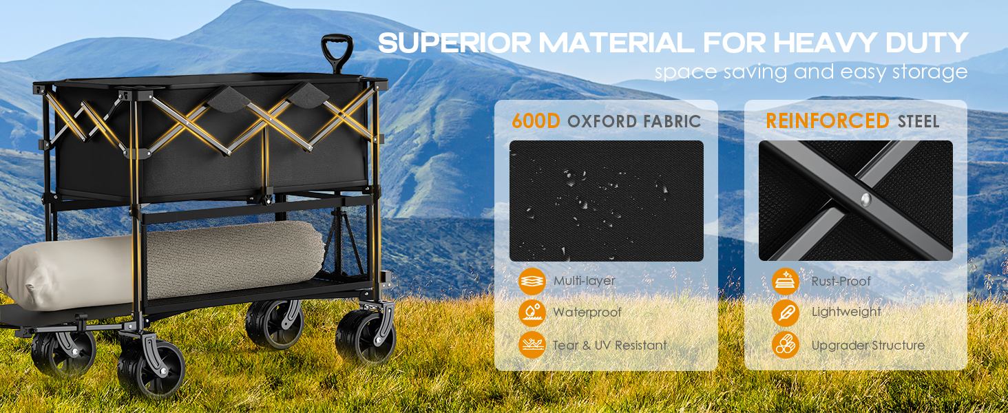 - Explore More Possibilities: Discover endless possibilities with the double decker wagon, your trusted companion for unforgettable moments. Perfect for camping, beach trips, transporting sports equipment or outdoor sports, the wagon enhances your adventures. For any inquiries or assistance, reach out to us anytime. We're here to help make your experience exceptional!