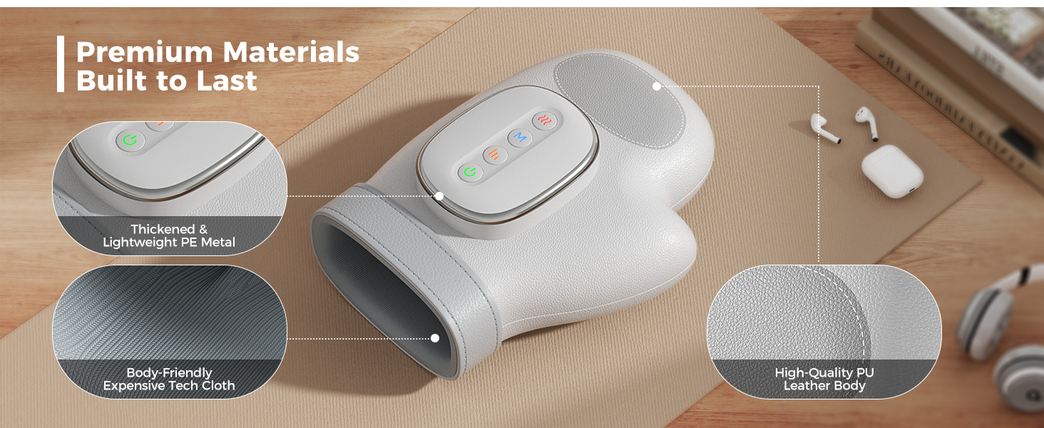 - High-Quality Materials: Premium PU leather body, built-in thickened and lightweight PE metal, body-friendly expensive tech cloth inside. This hand massager, designed to help relieve arthritis and carpal tunnel discomfort, is manufactured and tested using professional precision instruments.