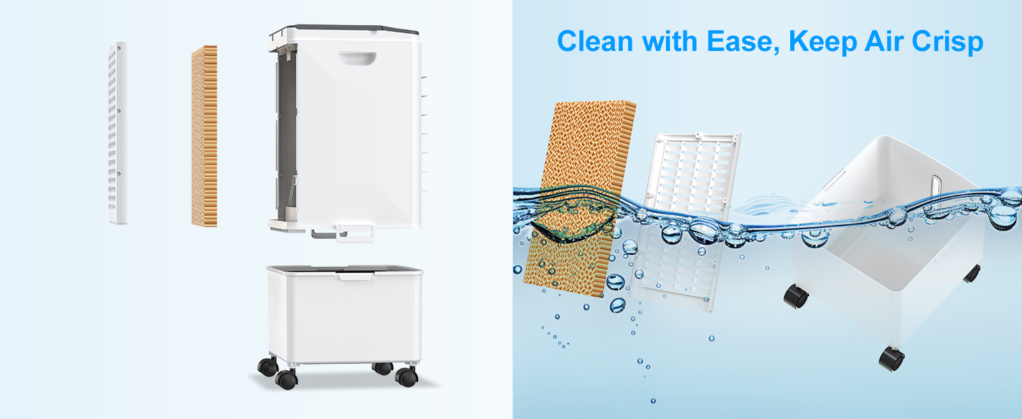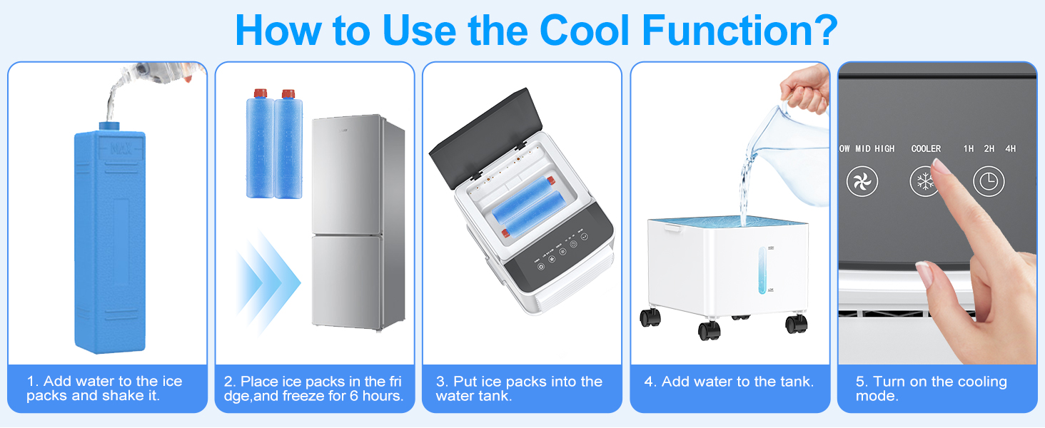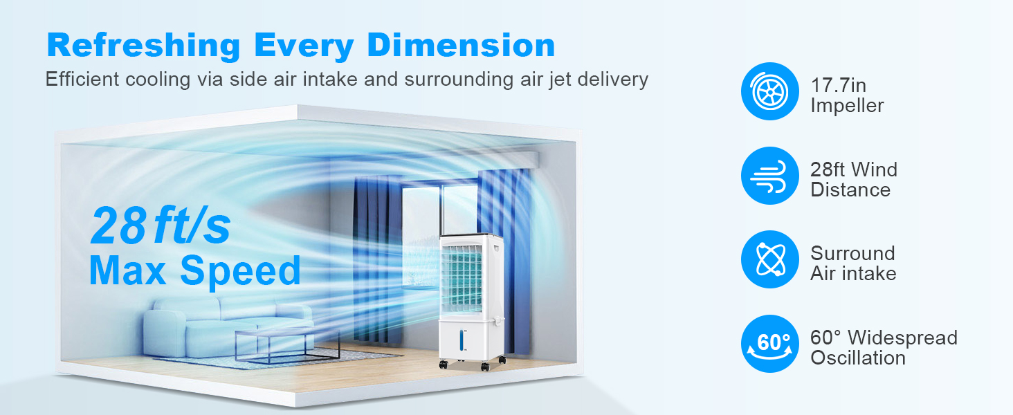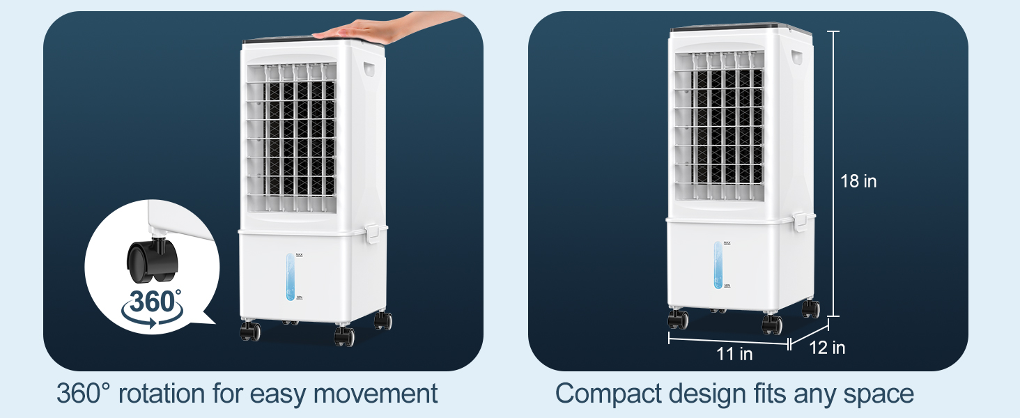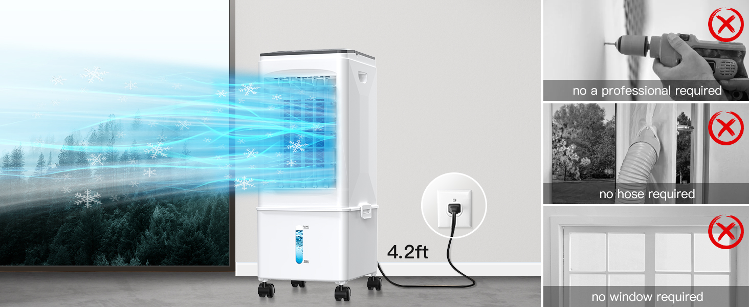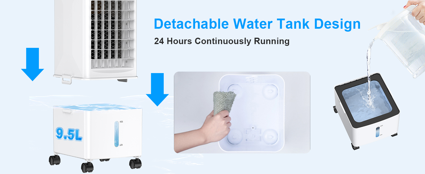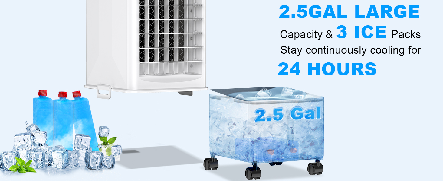 - 2.5 Gal Water Tank for 24H Cooling: Boasting a dual-tank design, our portable ac units for rooms are easy to refill from the top. With a large capacity of up to 2.5 gallons, the bottom tank provides up to 24 hours of continuous use without frequent refills [1 Year Warranty & 7/24 Customer Service are provided, please feel free to contact us]