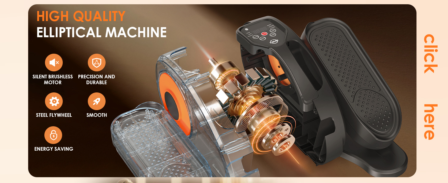 - [Whisper-Quiet & Knee-Friendly]Featuring silent wheels&advanced sound-dampening technology(β€20dB), making it perfect for offices, home, or shared spaces. The smooth elliptical orbit and reversible pedaling reduce knee strain, ideal for seniors, joint-pain users, or anyone seeking low-impact workouts. Use it as an under desk elliptical during work to stay active without disturbing colleagues, or as a discreet ellipse leg exerciser for seniors at home while watching TV.