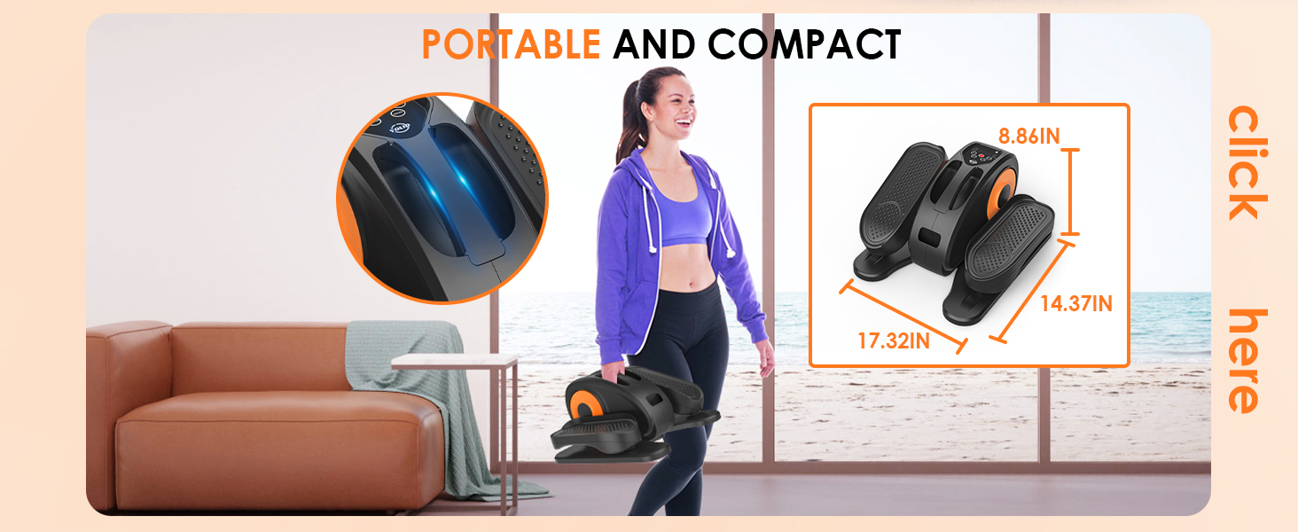 - [Compact Space-Saving Design] Designed as an under-desk elliptical & home elliptical machine, it measures 17.32x14.37x8.86 inches with a 1.74 sq ft footprint. Fits under desks, beside sofas, or tight cornersβperfect for apartments/offices. Ergonomic handle aids easy storage; compact build avoids clutter. Use as a seated pedal exerciser to stay active during work/TV without space compromise.