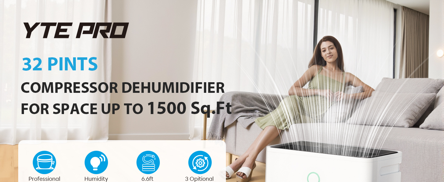 - ๐๐จ๐ฐ๐๐ซ๐๐ฎ๐ฅ ๐๐๐ก๐ฎ๐ฆ๐ข๐๐ข๐๐ข๐๐๐ญ๐ข๐จ๐ง ๐๐จ๐ซ ๐ ๐๐จ๐ฆ๐๐จ๐ซ๐ญ๐๐๐ฅ๐ ๐๐จ๐ฆ๐ - The YTE PRO 12L dehumidifier features an carnotcycle compression system that removes up to 32 pints of moisture per day (at 95ยฐF, 90%RH), making it perfect for large spaces up to 1500 sq. ft. Whether itโs your bathroom, basement, bedroom, or entire home, it keeps your space dry and comfortable all day long.