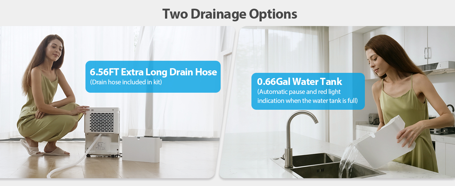 - ๐๐๐ฌ๐ฒ ๐๐ซ๐๐ข๐ง๐๐ ๐ ๐๐จ๐ซ ๐๐จ๐ฎ๐ซ ๐๐จ๐ง๐ฏ๐๐ง๐ข๐๐ง๐๐ - The 0.66gal water tank comes with a full tank indicator, so youโll always know when itโs time to empty it. Donโt like pouring water? No problem! The included 6.56ft drain hose makes continuous drainage a breeze, saving you time and effort.