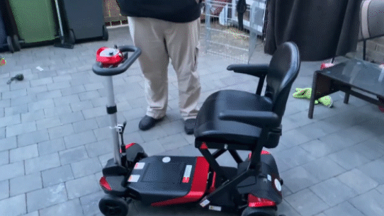 The Transformer scooter has a fully automatic mechanism with remote hand control. Just push a button to fold and unfold the scooter.